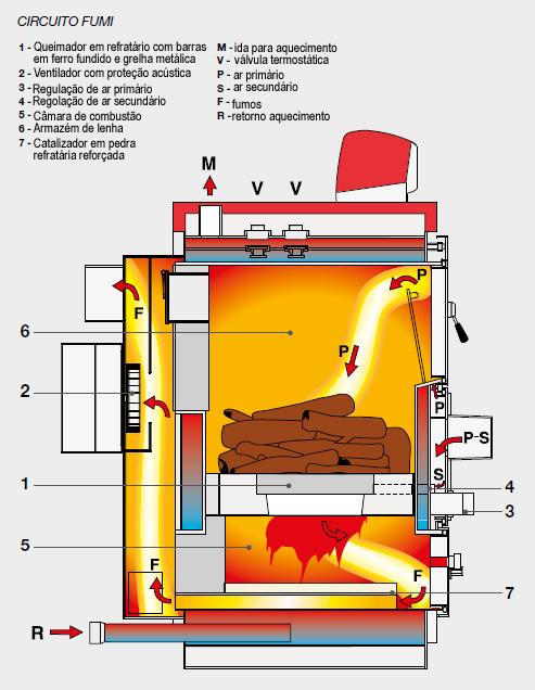 - Ventilador de gasificação da lenha colocado em aspiração;