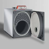 - Redução das dispersões do envolvente, devido ao alto isolamento com almofada de lã de rocha anti quebra (espessura 80 mm) e a porta com isolamento em fibra cerâmica, até 970 kW (-30% de dispersões por radiação)
