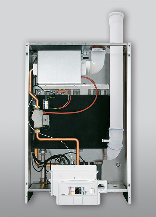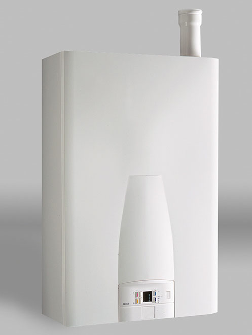 Caldeira mural a gás, de pré-mistura, de condensação, com câmara de combustão estanque e ignição eletrónica – corpo / permutador em alumínio/silício/magnésio – para aquecimento ou produção de calor, que pode ser instalada em cascata (max. 2 séries de 4 caldeiras cada uma) – Baixo teor de NOx (classe 5) EN 297/EN 483.