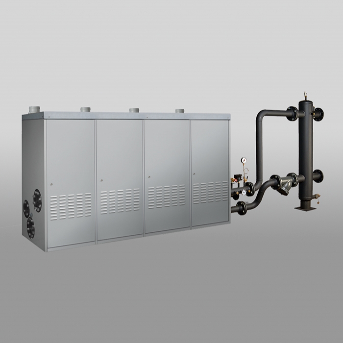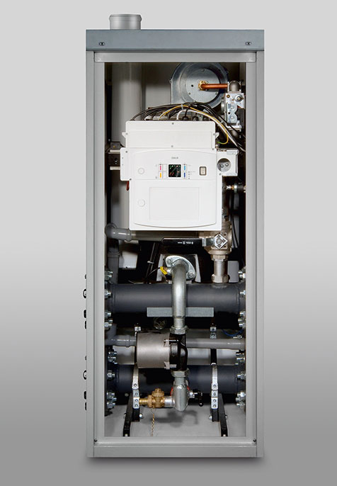Caldeira, módulo térmico a gás, de condensação, para colocação no exterior ou interior, permutador em alumínio/silício/magnésio, tiragem forçada dos fumos, acendimento automático – para aquecimento ou produção de calor, que pode ser instalada em bateria (max.2 séries de 4 caldeiras para um total de 720kw).